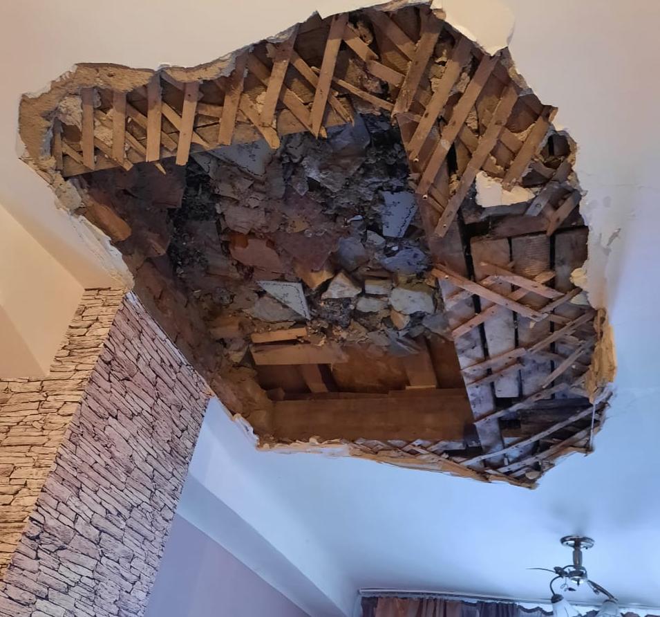 Иван – сосед Марины Васильевой – женщины, в квартире которой накануне рухнул потолок. Его квартира находится сверху. Напомним, чп произошло на улице Шёлковая. При обрушении только чудом не пострадали дети. В этой квартире живёт мать с двумя малышами. Женщина в этот момент находилась в комнате, один из её детей играл рядом. Вдруг с потолка кухни начали падать небольшие камни. а следом потолок обрушился полностью.