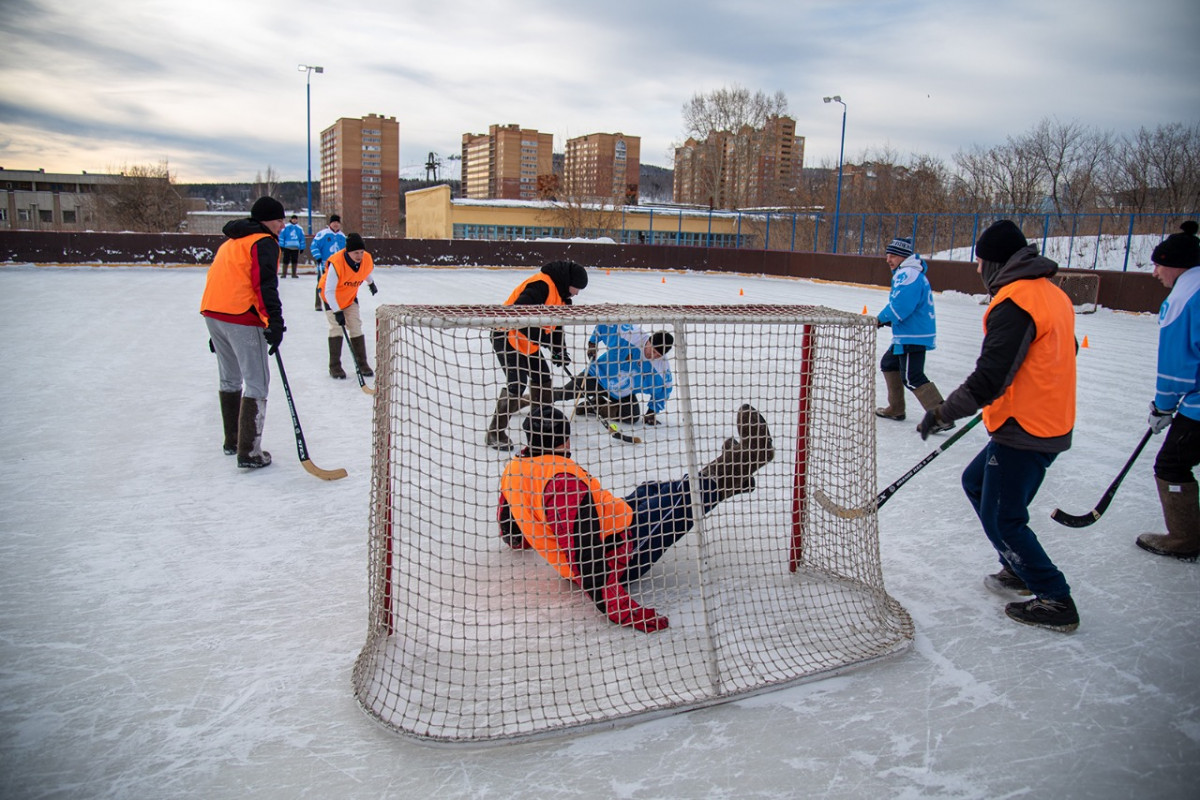 Краевая полиция, спортсмены и студенты сыграли в хоккей в валенках в честь 23 февраля.