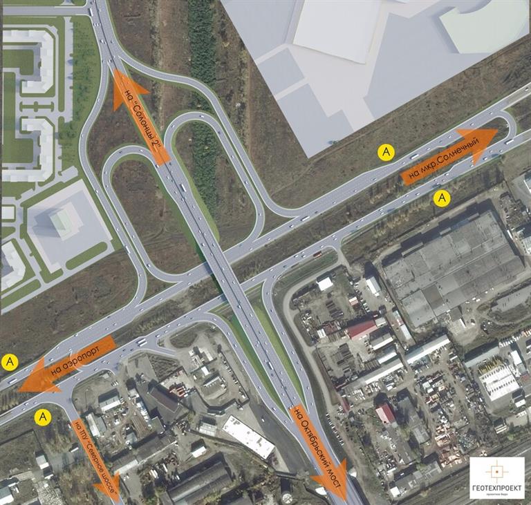 Шестиполосный путепровод с разделительной полосой, тротуарами, лестницами, освещением, ливневой канализацией и четырьмя съездами обеспечит безопасную связь Северного шоссе с ул. Авиаторов, а также соединит жилой район Солонцы-2 с другими районами Красноярска.