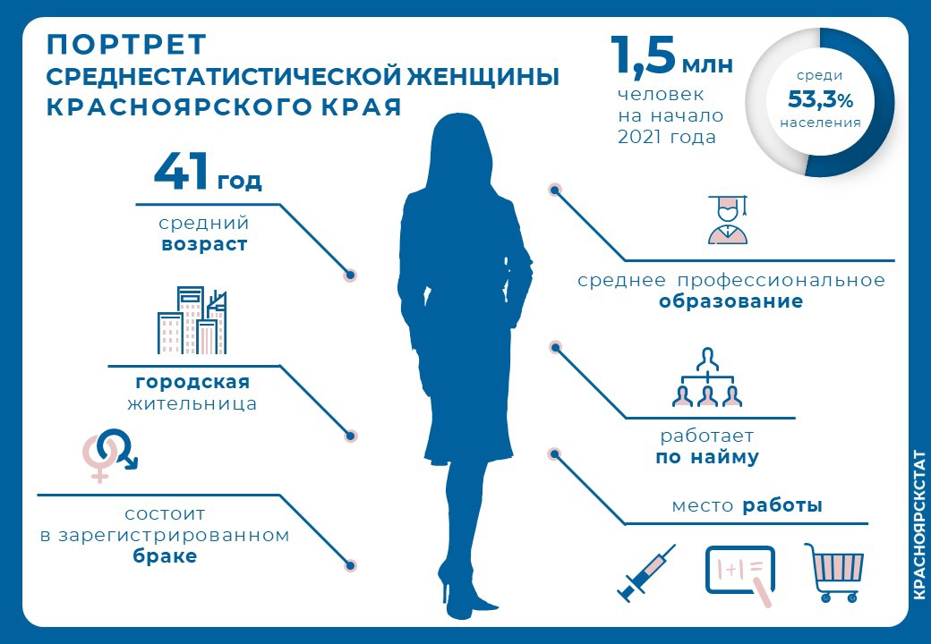- В самом расцвете сил, проживает в городской местности, замужем, работает в здравоохранении, либо образовании или торговле», – такой портрет среднестатистической представительницы прекрасного пола Красноярского края получился у статистиков.
