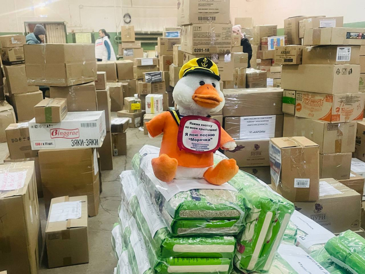 Машина проведёт в пути около недели. Она везёт продовольственные товары, детскую одежду, канцелярию, бытовую химию.