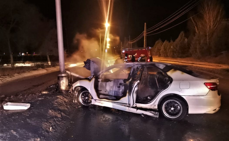 В Железногорске двое парней угнали машину такси Toyota Camry. Они двигались по улице Красноярская, в сторону улицы Матросова и наехали на бордюр, а затем врезались в фонарь. В результате аварии машина загорелась. ДТП произошло в ночь с субботы на воскресенье около трех часов. 26-летний водитель и его 22-летний пассажир были госпитализированы с травмами и ожогами в больницу.