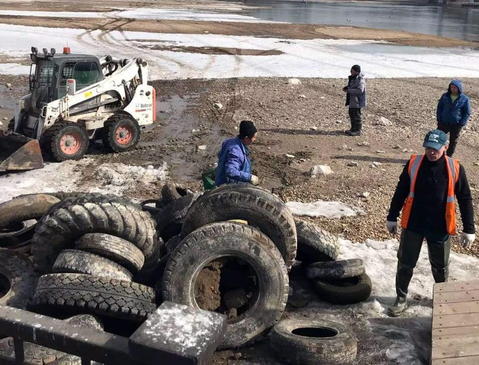 В Красноярске под Виноградовским мостом образовалась свалка автомобильных покрышек.