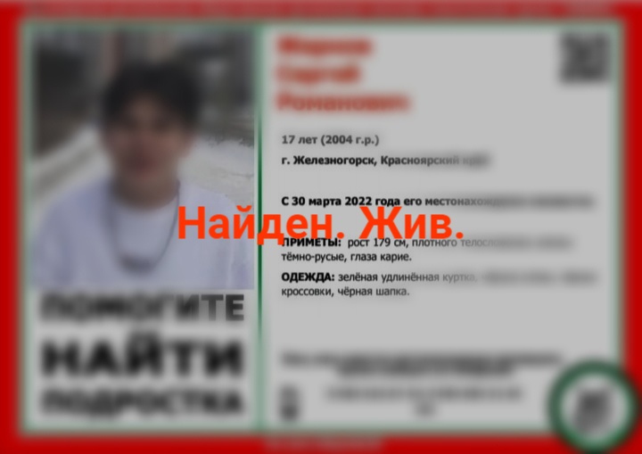 В Железногорске нашли четвертого пропавшего подростка. Об этом рассказали в КРОО ПСГ «Сибирь».