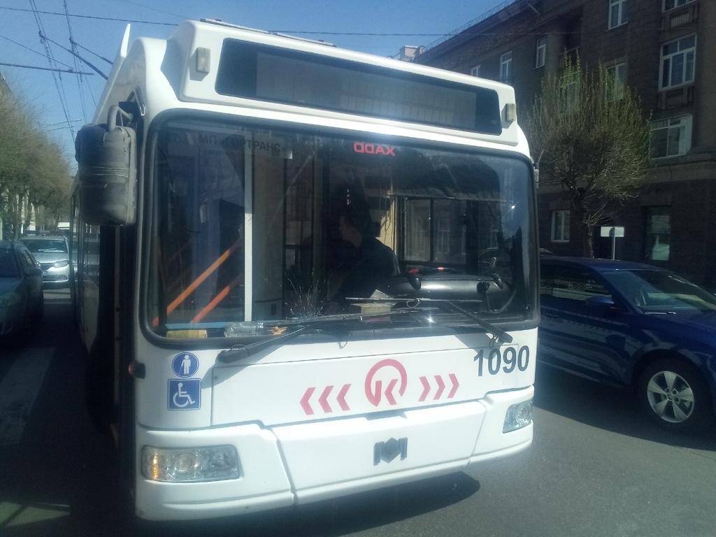 По словам очевидцев, у троллейбуса разбито лобовое стекло с правой стороны.
