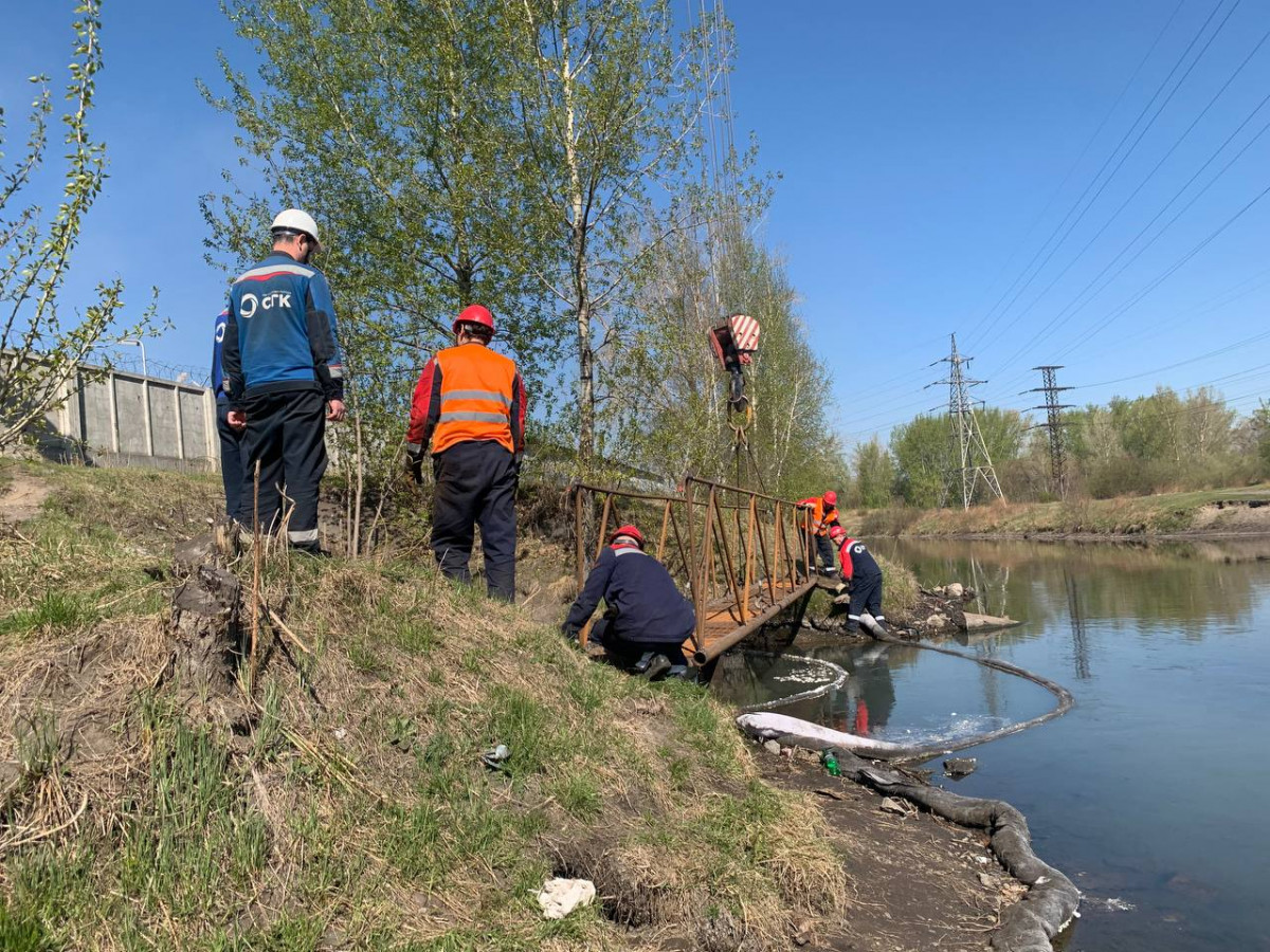 Специалисты СГК и аварийно-спасательной службы устраняют загрязнение поверхности воды в районе береговой насосной станции и на других гидротехнических сооружениях Красноярской ТЭЦ-1, чтобы предотвратить распространение масляной пленки ниже по течению.