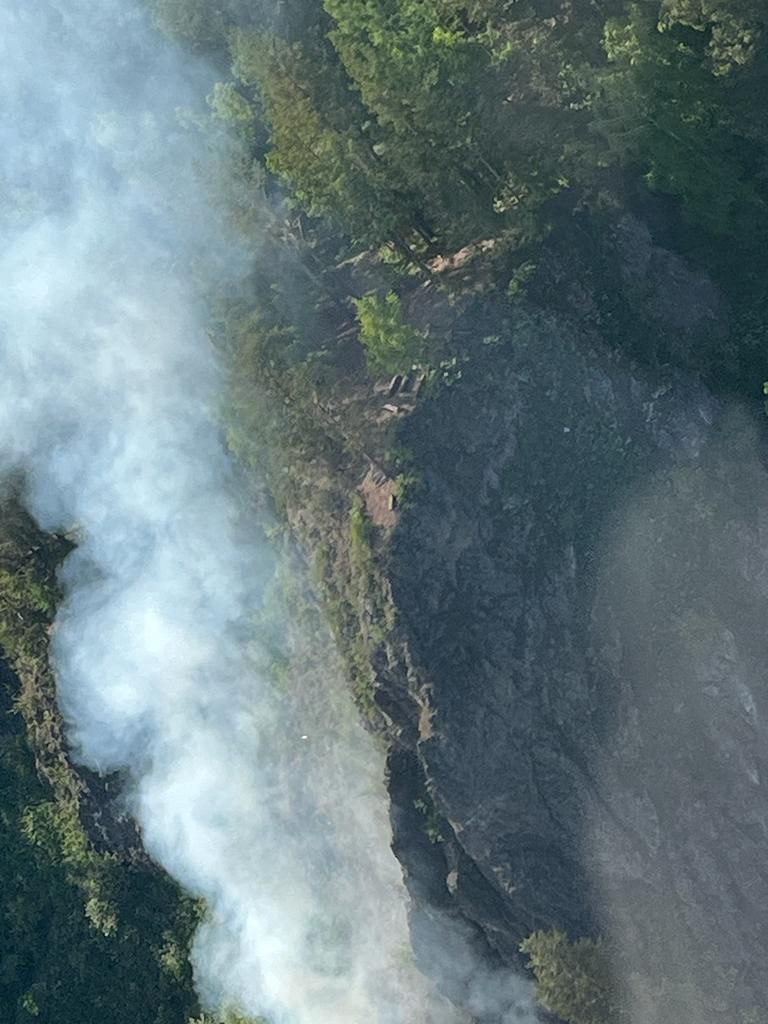 - До воды сильно далеко, прокапываем минполосы подручными инструментами, пока вот так ловим, держим пожар. Прочищаем тропы, чтобы огонь не ушёл на другую сторону горы. Тут даже отжиг бессмысленно применять, пожар по отвесным скалам идёт. Туда не попасть никак, убиться можно. Так с хребта на хребет скачем, по отвесным скалам. Ног уже не чуем. Сообщили, что должны инспекторы Лесной охраны пробиться на двух квадроциклах с водой, — рассказал Валерий Солухов, инструктор десантно-пожарной группы Красноярского авиаотделения.