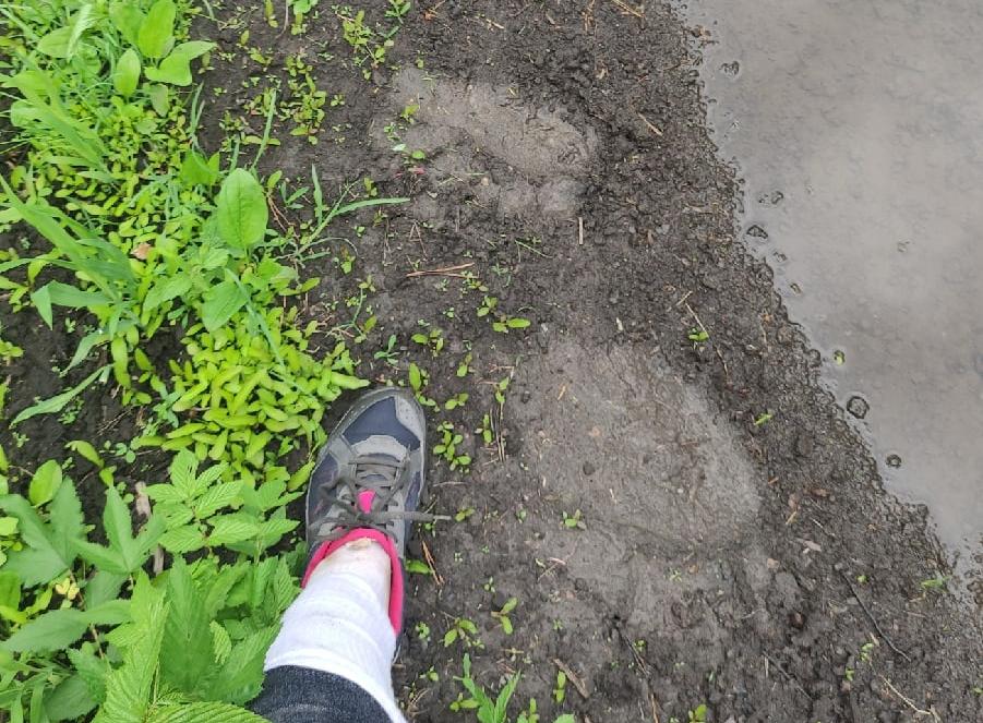 На снимках довольно внушительный след хищника — почти в два раза больше человеческого.