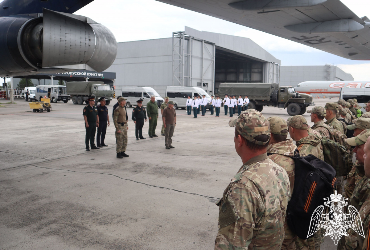 В аэропорту имени Д.А. Хворостовского прибывших военнослужащих встречали начальник Управления Росгвардии по Красноярскому краю, руководители и ветераны подразделений, военный оркестр красноярского соединения и боевые товарищи.