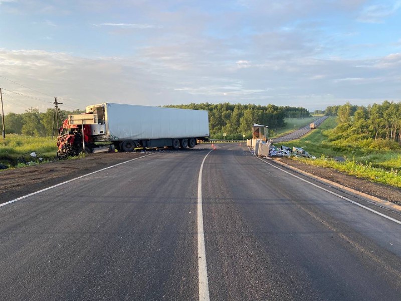 25-летний водитель большегруза «Мерседес» ехал более 12 часов без отдыха и сна. Мужчина вез из Канска контейнеры с хозтоварами. В какой-то момент мужчина из-за усталости потерял контроль над фурой и выехал на «встречку». Там он столкнулся с другим грузовиком, за рулем которого был 44-летний водитель.
