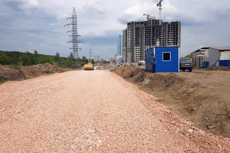 В Красноярске строят дорогу возле новой школы на Бугаче