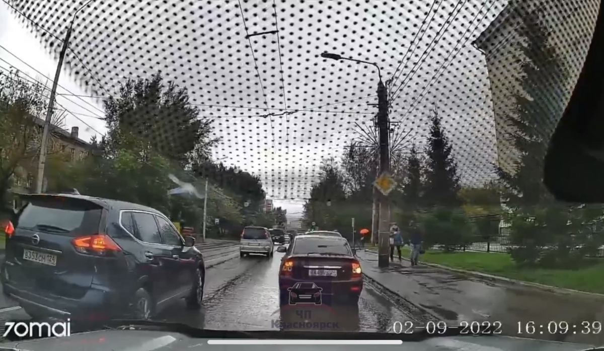 В Октябрьском районе на улице Академика Киренского легковушка стукнулась с проезжающей впереди машиной. Видео несущественного ДТП попало на видеорегистратор соседнего автомобиля. Его опубликовали в Telegram-канале «ЧП Красноярск».