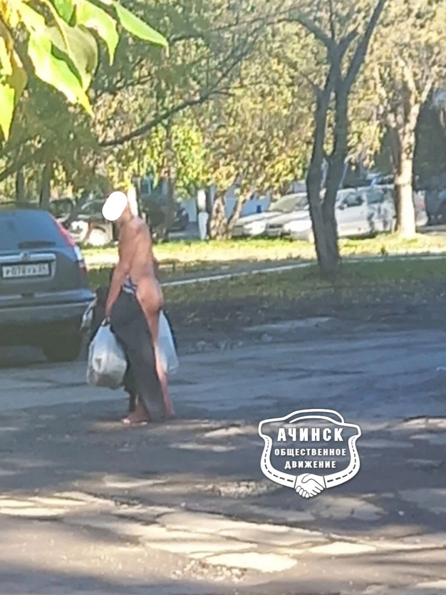 Накануне жители Ачинска заметили на улице странного мужчину. Он был полностью раздет и выглядел потерянным. В руках у него были пакеты с неизвестным содержимым, похожие на мусорные мешки. Фотографии с ним появились в городском паблике.