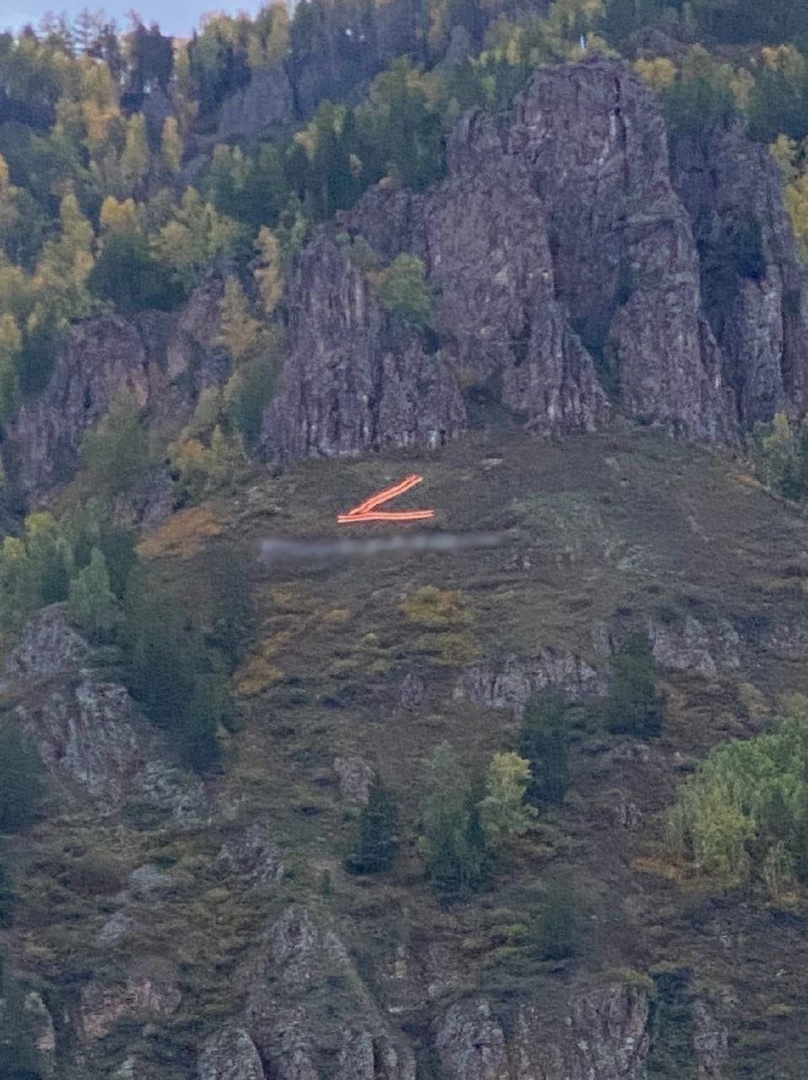 На горе напротив Дивногорска под буквой Z появилась пацифистская надпись. Ее мы не можем процитировать из-за законодательных ограничений.