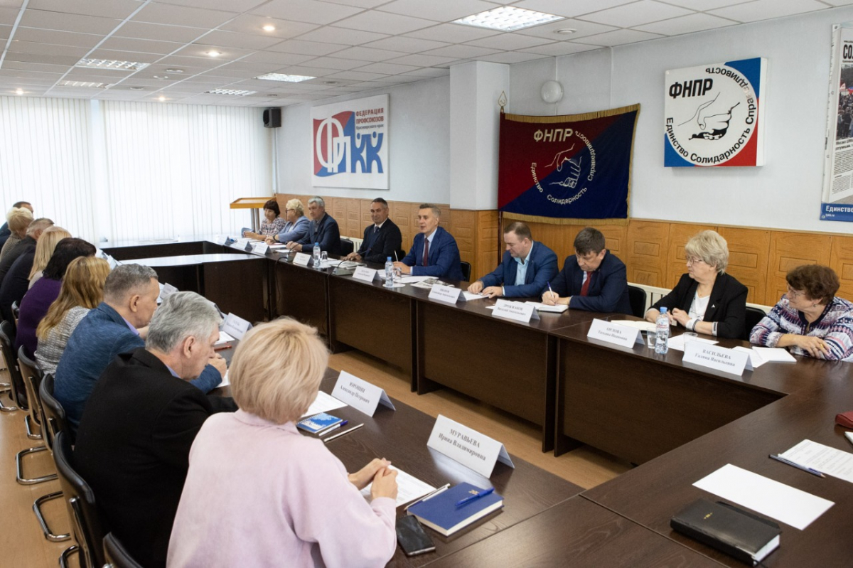 Встреча с лидерами профсоюзного движения региона прошла на площадке Федерации краевых профсоюзов в преддверии Всемирного дня действий «За достойный труд!».