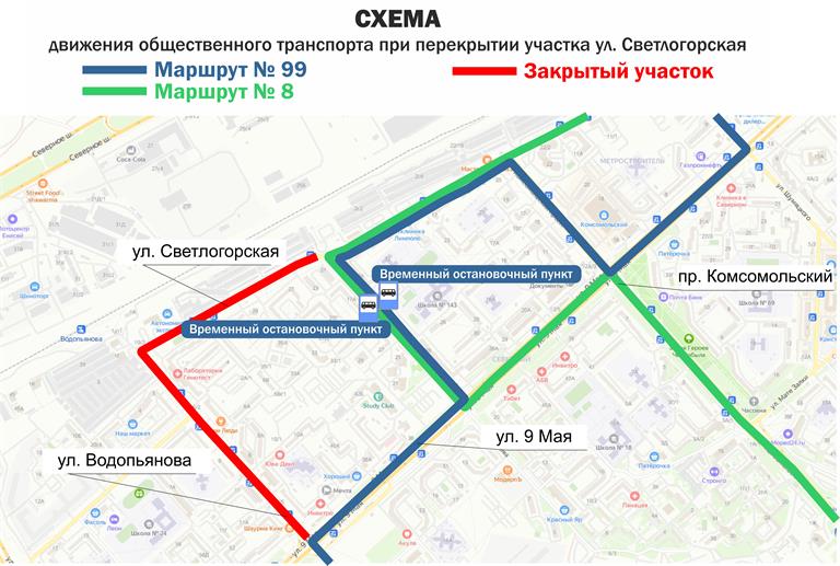 Ранее схемы движения этих двух маршрутов изменили из-за ремонта теплосетей на Светлогорской. Однако он затягивается. А потому новая схема движения сохранится до конца октября.