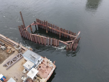 ЧП произошло еще год назад. Судно «Капитан Крылов» выполняло рейс Красноярск — Лесосибирск и двигалось в сторону переката «Бурмакинские камни». Не справившись с течением реки, одна из прикрепленных к судну барж врезалась в основание строящегося моста. Хрупкая конструкция не выдержала.