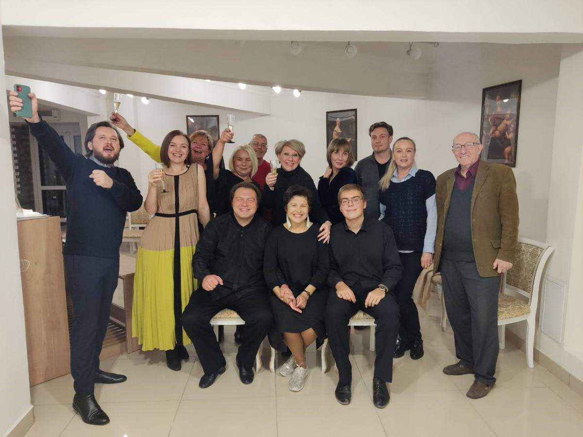 Собрались близкие друзья органиста и его жены Евгении, которая, как настоящая сподвижница музыканта, помогла в открытии салона, его декорировании и создании атмосферы уникального места для умного досуга горожан.