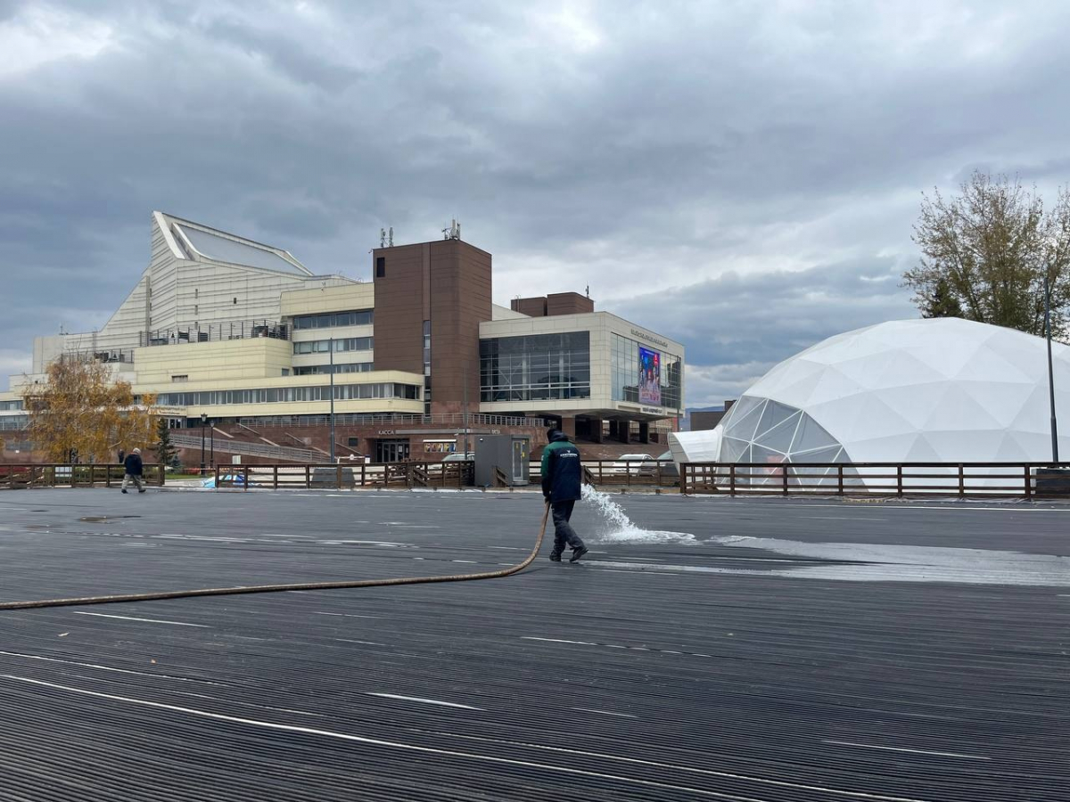 У БКЗ в Красноярске начали готовить место под будущий каток