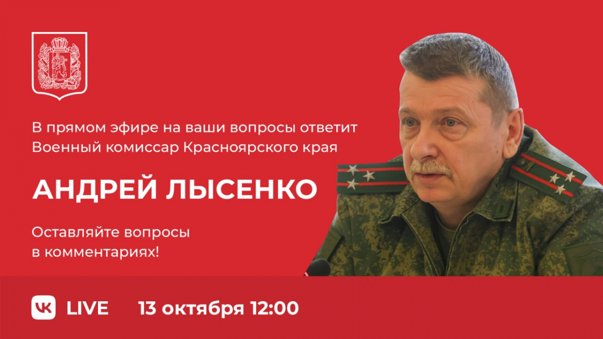 Жителей региона призвали оставлять свои вопросы в комментариях под постом. Отвечать на них будет Военный комиссар Красноярского края Андрей Лысенко.