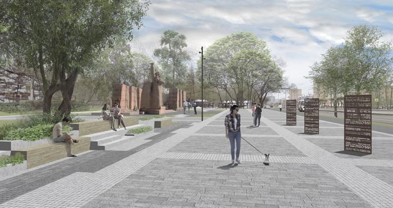 Поблизости установят мемориальный комплекс «Сибирский каторжный путь». Каким будет променад — выбрали сами красноярцы. Они голосовали за то, где в первую очередь пройдет благоустройство, а также на специальном урбан-форуме обсуждали проект прогулочной зоны Красраба. После этого в дело вступили разработчики, которые и создали готовый эскиз пространства.