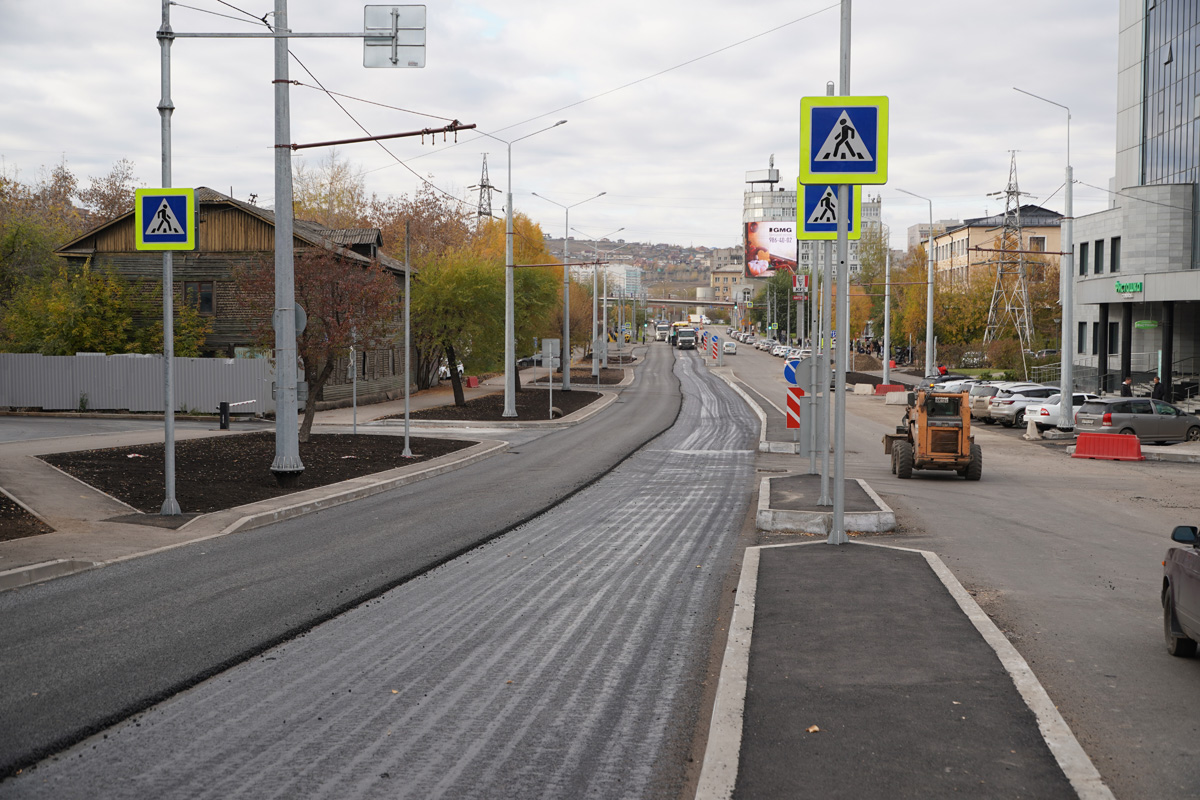 На улице отремонтировали ливнёвки. Проезжую часть расширили до 4 полос, заменили все бортовые камни и уложили два новых слоя асфальта из щебеночно-мастистой смеси особой прочности. Серьезное внимание дорожники уделили пешеходной части. Отремонтировали все тротуары, улица стала удобной для маломобильных людей. Заменили освещение, обновили опоры и кронштейны для троллейбусов.