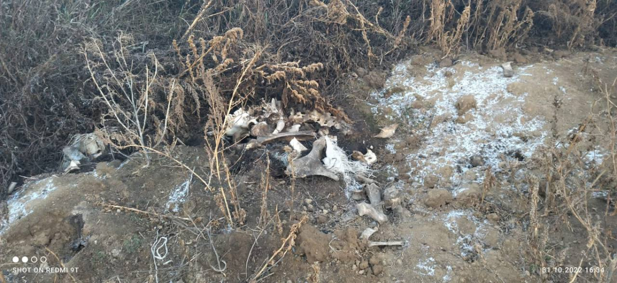 Останки люди заметили на окраине посёлка. Сначала кости и туши крупнорогатого скота просто лежали в мешках на земле, но когда местные жители начали возмущаться — их засыпали песком. Кто это сделал, пока неизвестно.