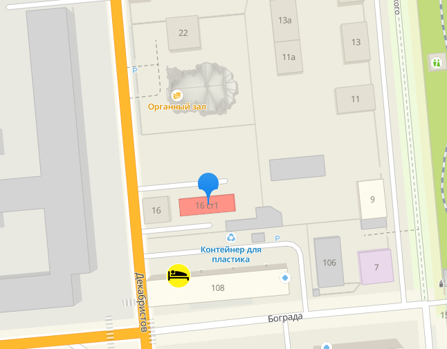2-этажный жилой дом на Декабристов, 16, стр. 1 снесут. Его признали аварийным. Здание находится рядом с Органным залом.