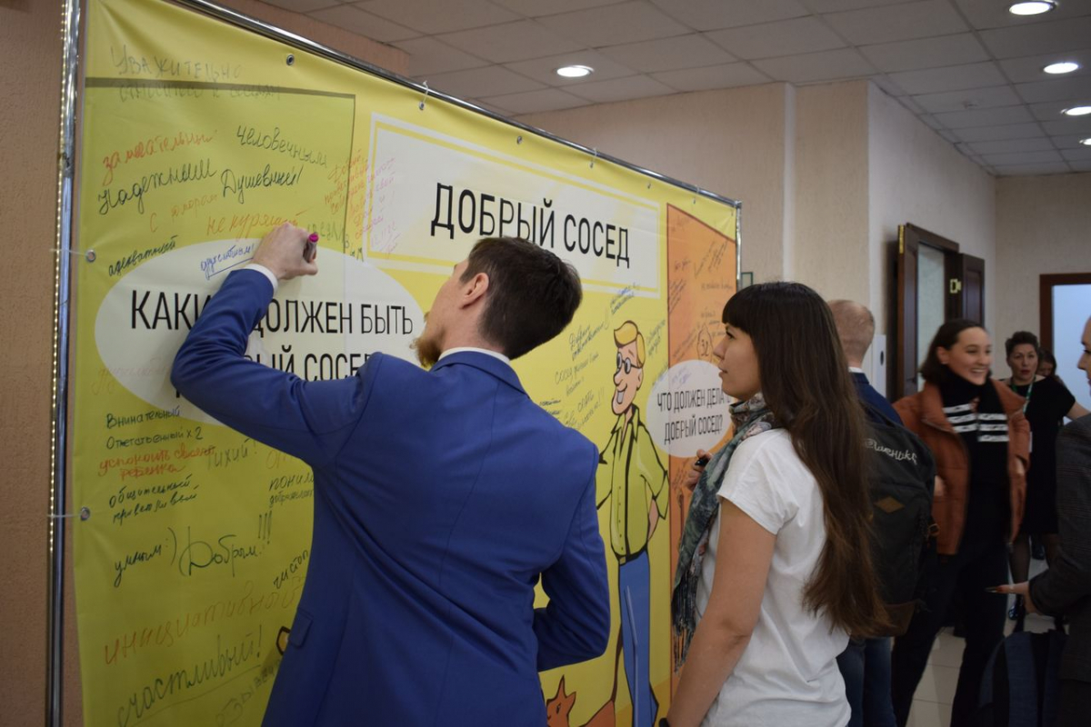 Активные граждане обсудили вопрос о восстановлении добрососедских отношений. Участники предлагали не только традиционные формы объединения соседей, такие как субботник, но и, например, такие проекты как «Соседская экономия», когда внутри одной парадной соседи вместе приобретают дрель, лопаты или набор инструментов для общего пользования; «Соседские библиотеки на первом этаже парадных» или буккроссинг; «Зеленый своп» — еще один проект, направленный на улучшение соседских отношений. Он предполагает, что все жители многоквартирного дома могут обмениваться растениями и семенами различных культур.