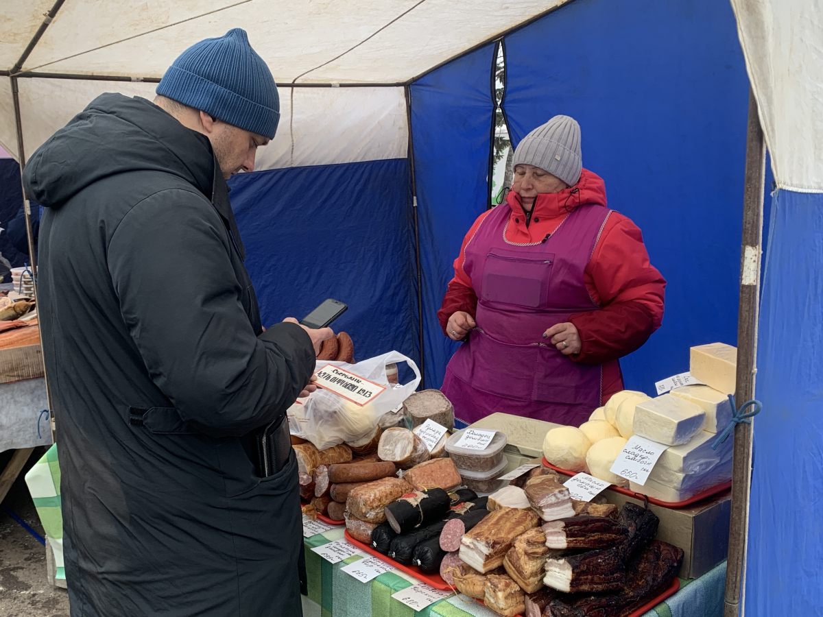Местные фермеры предлагают сыры, овощи и мясную продукцию, хлебобулочные изделия. Некоторые товары перед покупкой можно даже продегустировать.Активно продаются варежки и носки ручной работы — горожане стараются хорошо утеплиться к зимнему сезону.