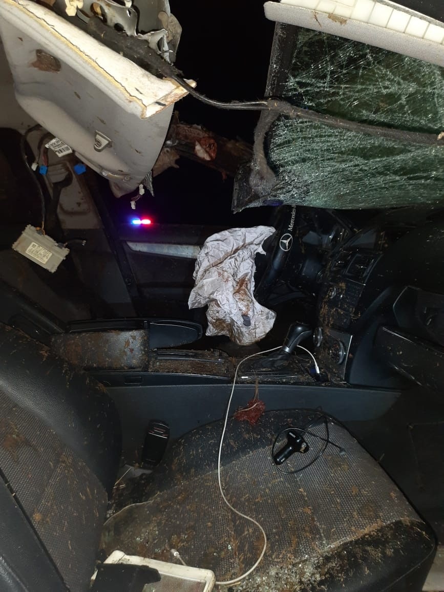 Накануне поздно вечером «Мерседес» двигался в сторону Красноярска из Черногорска, когда прямо на дорогу вышли кони. Водитель не успел затормозить и машина на большой скорости влетела в животных. От полученных травм жеребцы скончались на месте.