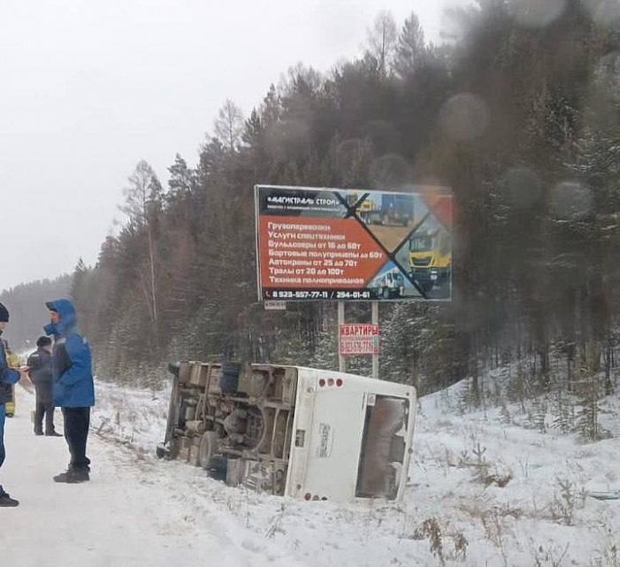 В Красноярском крае 9 человек пострадали в результате опрокидывания автобуса