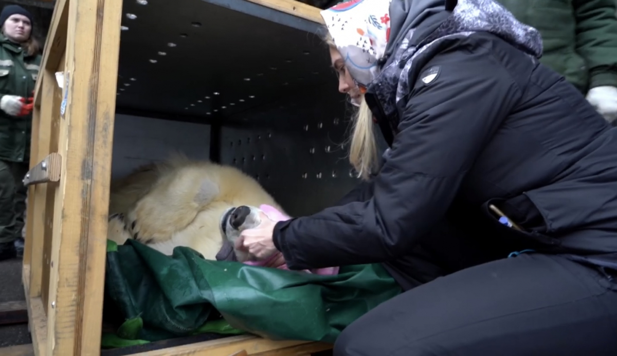 У спасенного в Красноярском крае белого медведя Диксона нашли потертости на неподвижных лапах