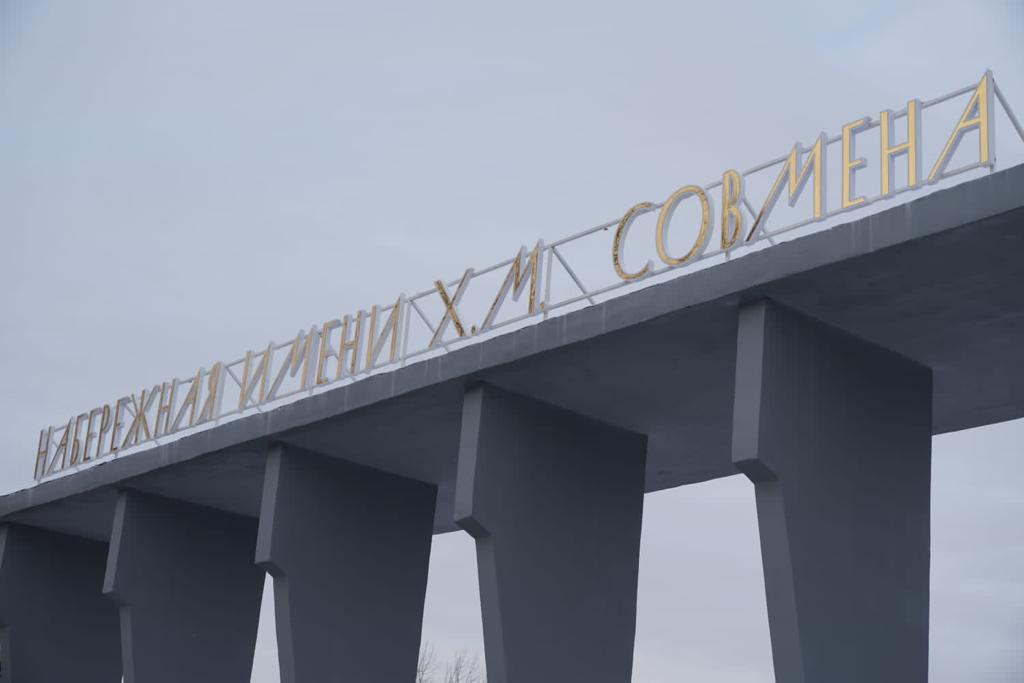 В Ленинском районе на набережной имени мецената Хазрета Совмена появилась одноимённая надпись. Ее установили на входной группе.