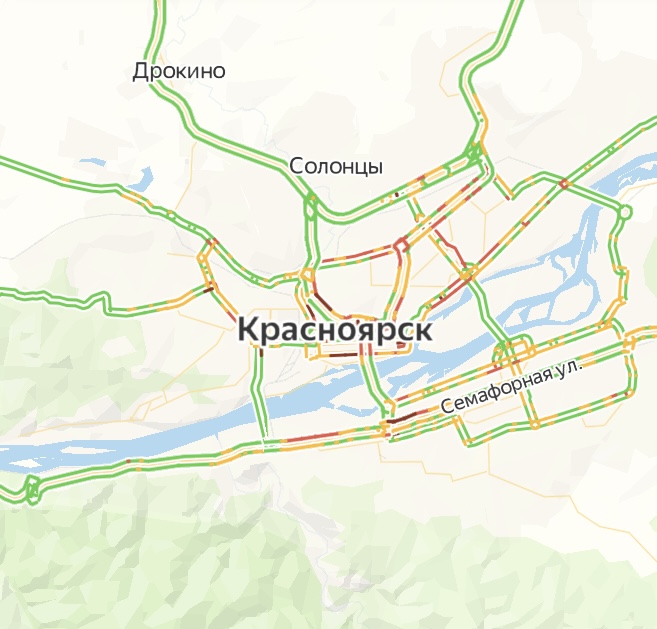 В Красноярске снова 9-балльные пробки. Такие данные фиксируют популярные онлайн-сервисы.