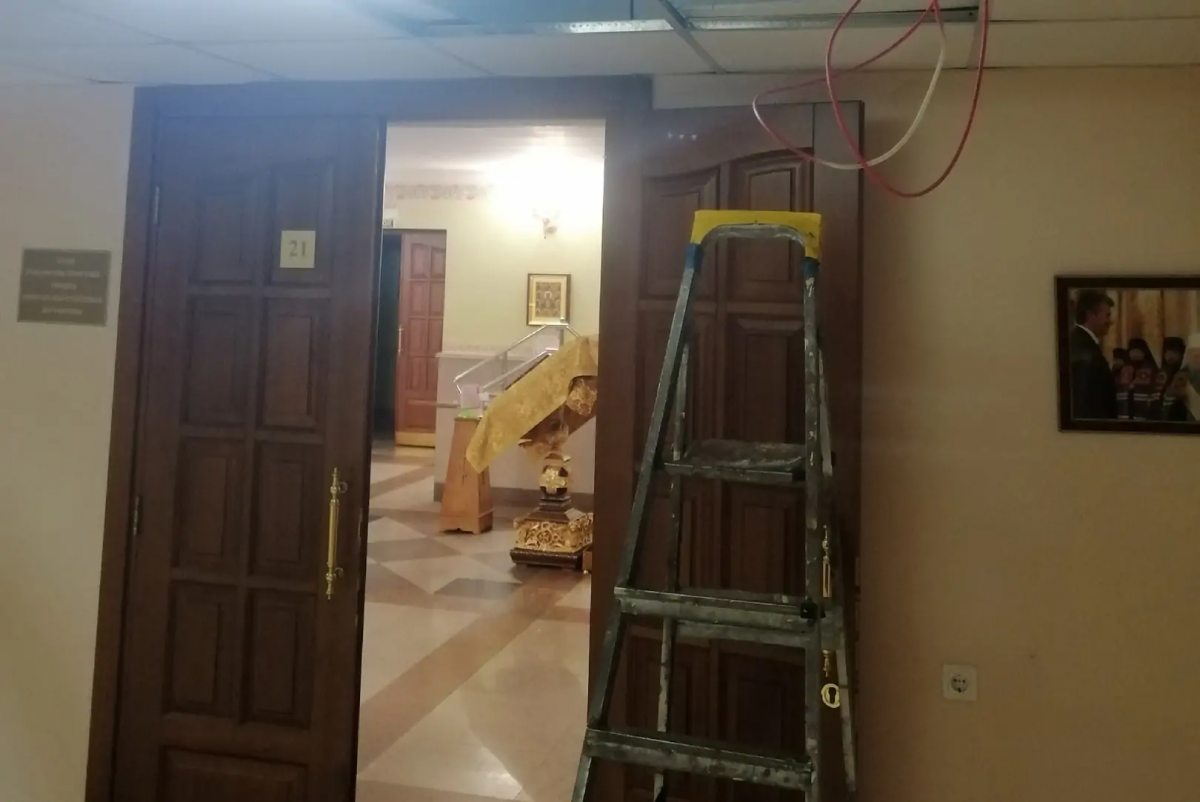 Ремонтируют верхний и нижний храмы. В первом обновят клирос и заменят столы для регента. Во втором уже уложили новую плитку в баптистерии, а сейчас монтируют новую систему вентиляции.