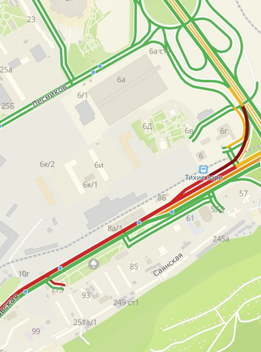 Днем 5 января в Красноярске в районе фанпарка «Бобровый лог» собралась большая пробка из отдыхающих. По данным сервиса 2гис, заторы начинаются уже со съезда с моста.