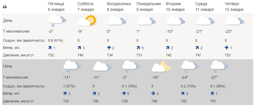 В субботу немного похолодает. Столбик термометра опустится до -9° днем и до -11° ночью. Осадков не ожидается