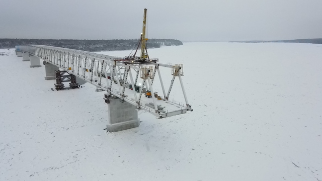 Несмотря на праздники продолжается монтаж последнего десятого пролета Высокогорского моста в Енисейском районе. Для работ задействовали более 100 человек и 13 единиц техники. На строительство выделили 7 миллиардов рублей.