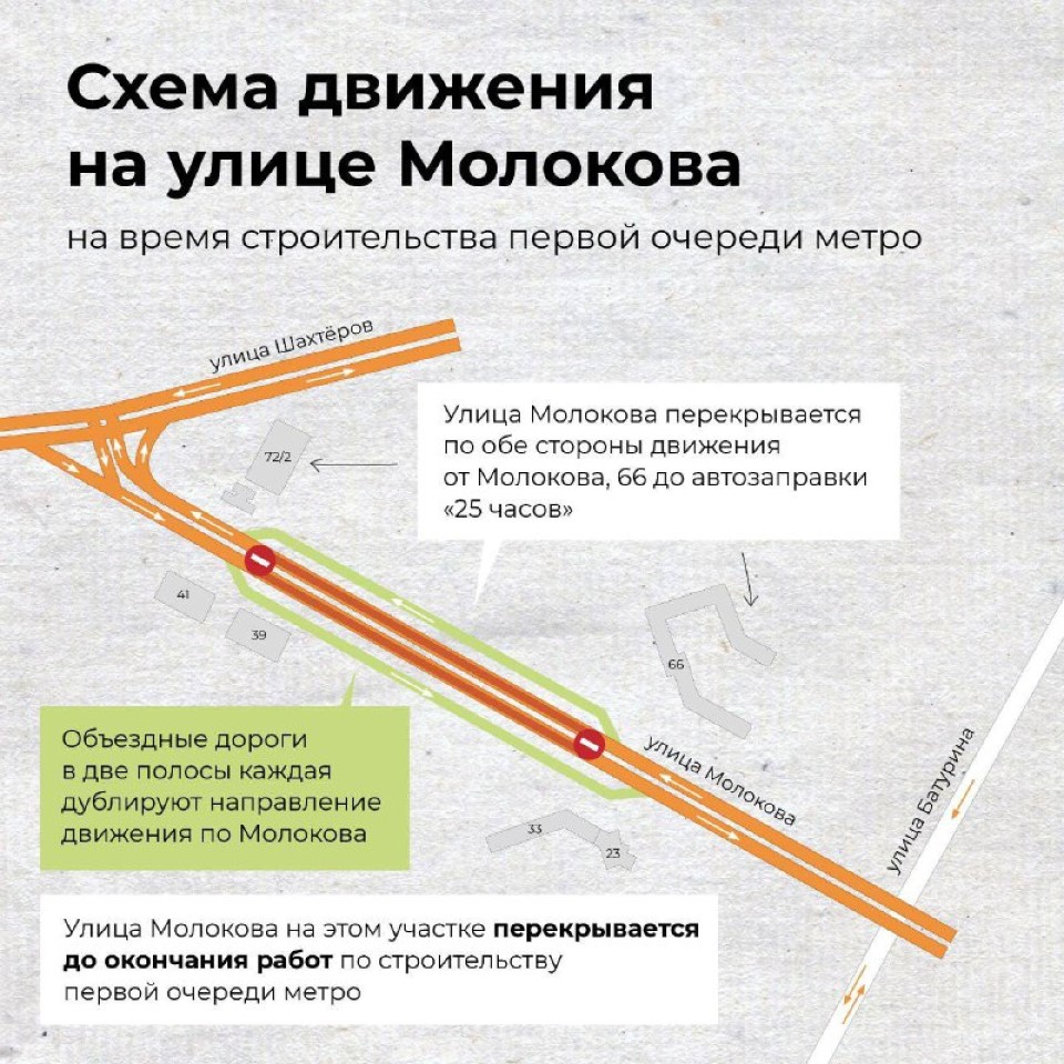 Так, пишет издание ДЕЛА, строители уже приступают к подготовке первого котлована. Из-за этого движение на ул. Молокова перекроют через 10 дней, с 21 января.