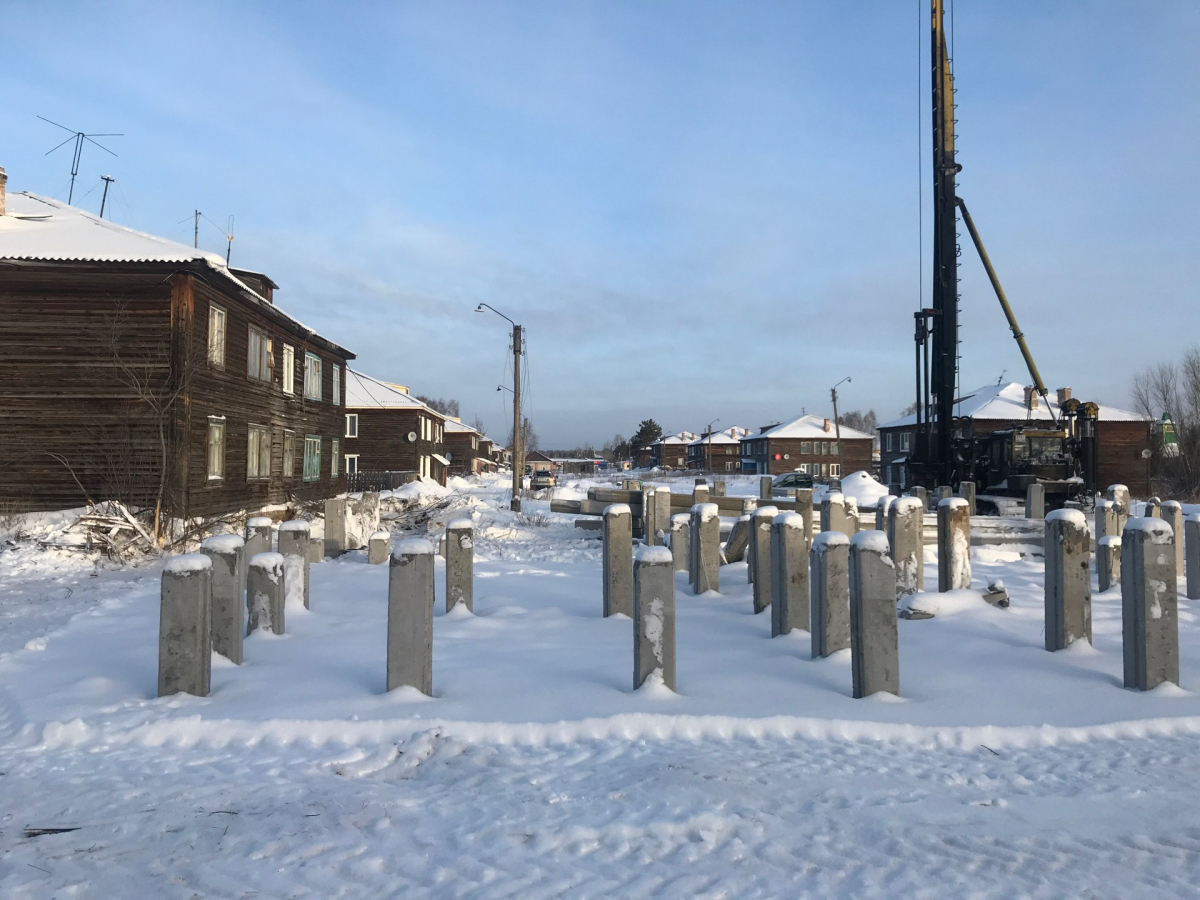 Всего в доме на улице Октябрьская, 1а будет 54 квартиры. Его уже начали строить. Забиты сваи.