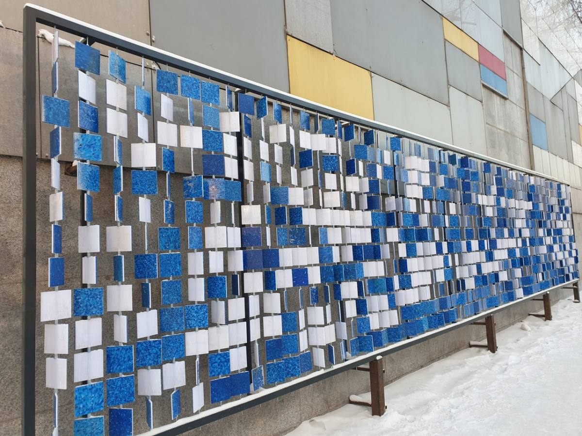 На улице Железнодорожников в Красноярске появился новый арт-объект. Это большое панно с вращающимися бело-синими квадратами. Из них жители города могут складывать слова и рисунки.