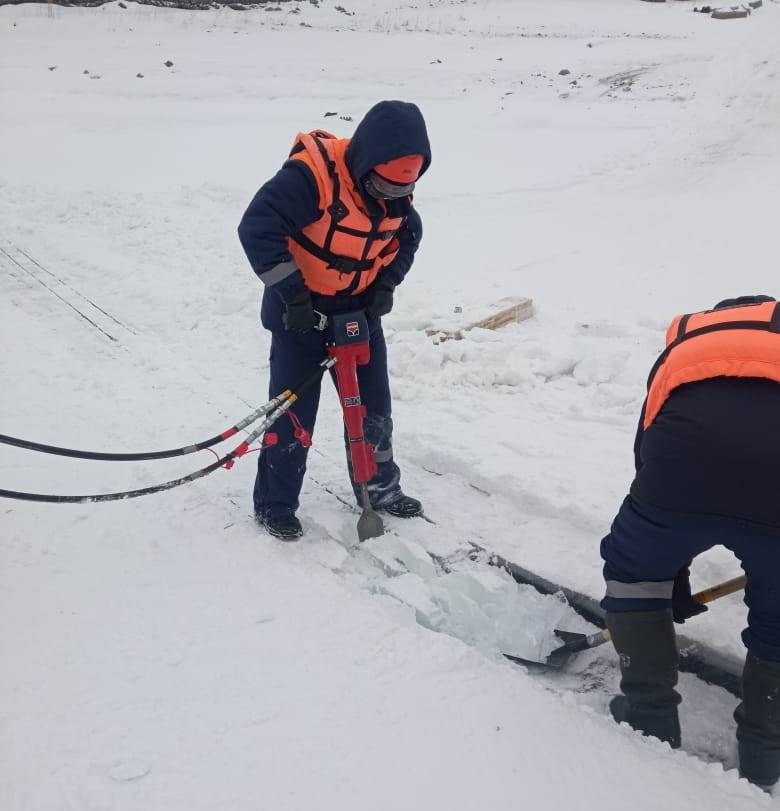 Спасатели проделали 30-метровую выемку на льду Красноярского водохранилища