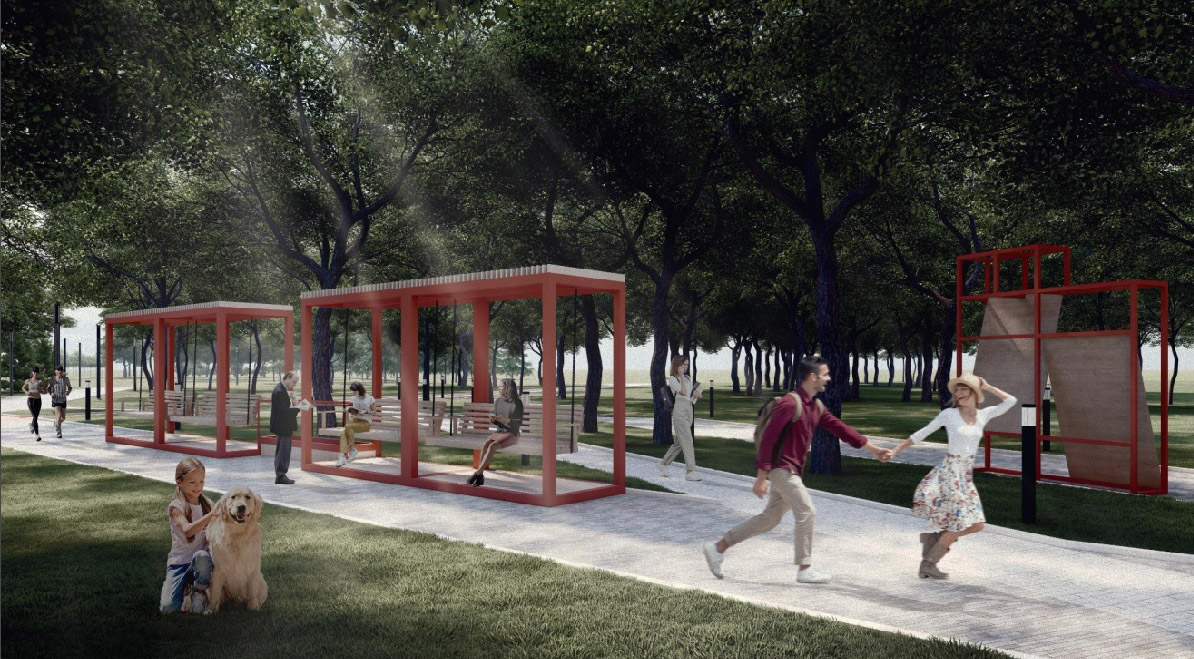 Сейчас на этом месте находятся торговые ларьки, кафе и заброшенные строения. Их планируют снести. Вместо этого на участке появится ещё и пешеходный тротуар. Там также высадят деревья.