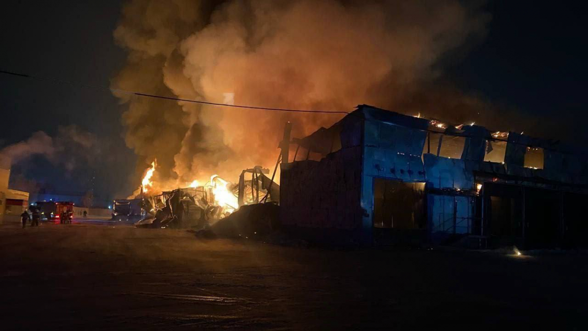 Склад полностью обрушен. Пожару присвоен 3 ранг (самый высокий — пятый). В здании есть газовые баллоны и спецтехника на газовом оборудовании. Полицейские регулируют движение в районе места возгорания.