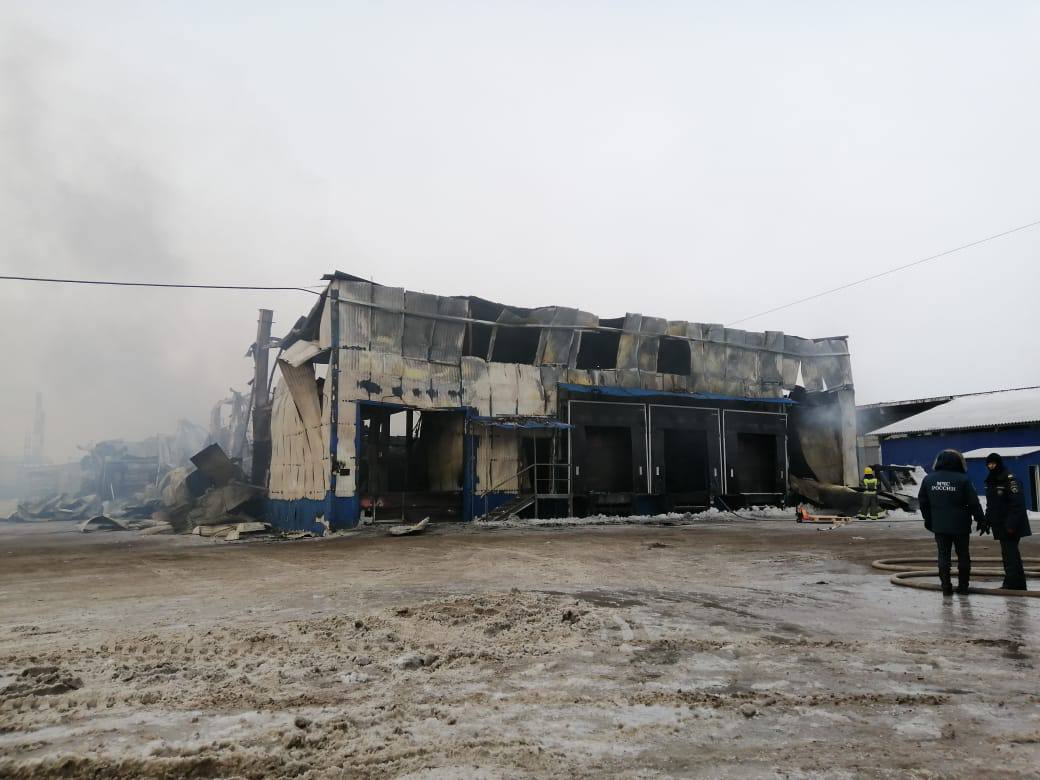 Напомним, что пожар на складе начался в понедельник в 18:10. Здание полностью выгорело.