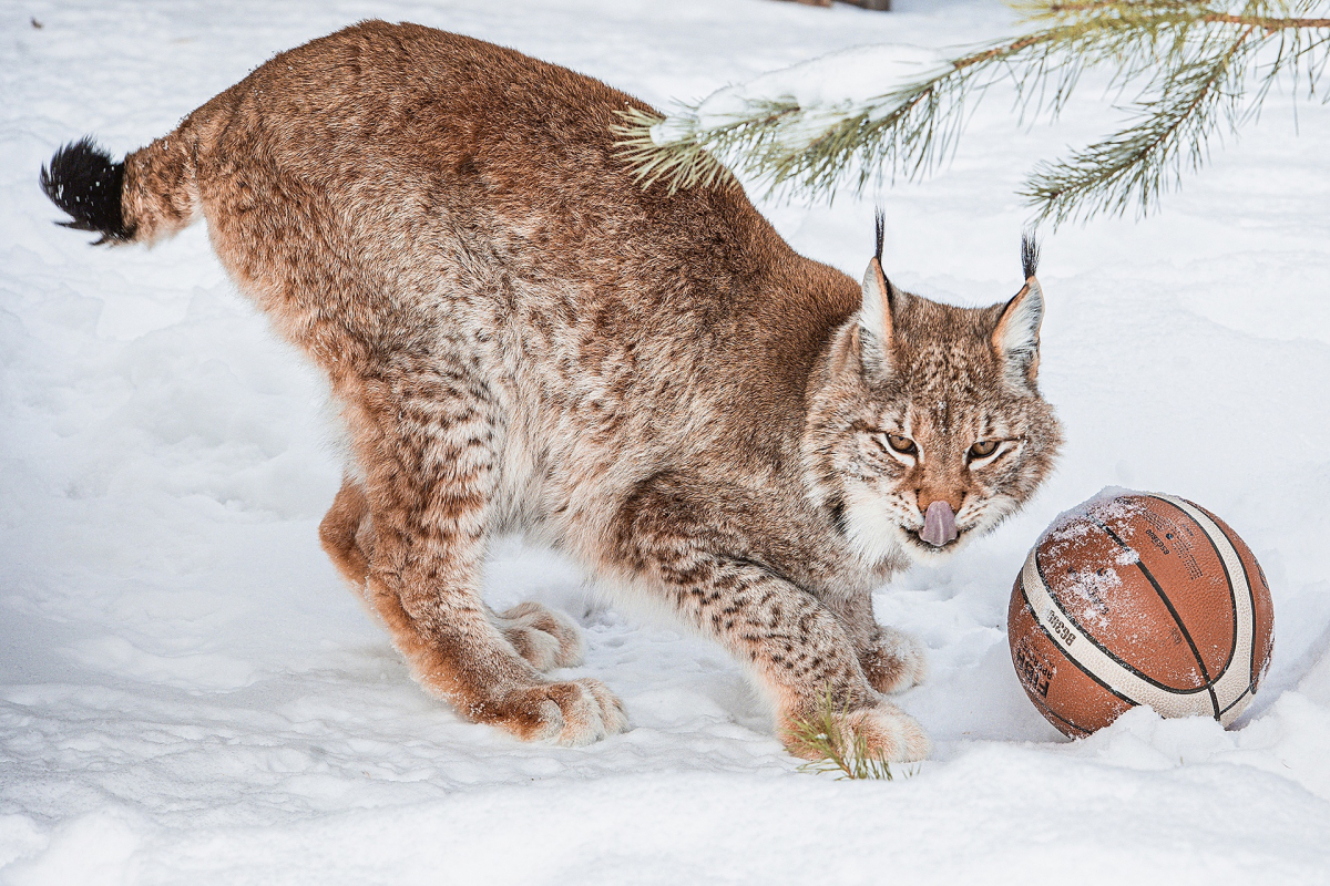 Баскетбольный мяч подарили рысям в красноярском «Роевом ручье»