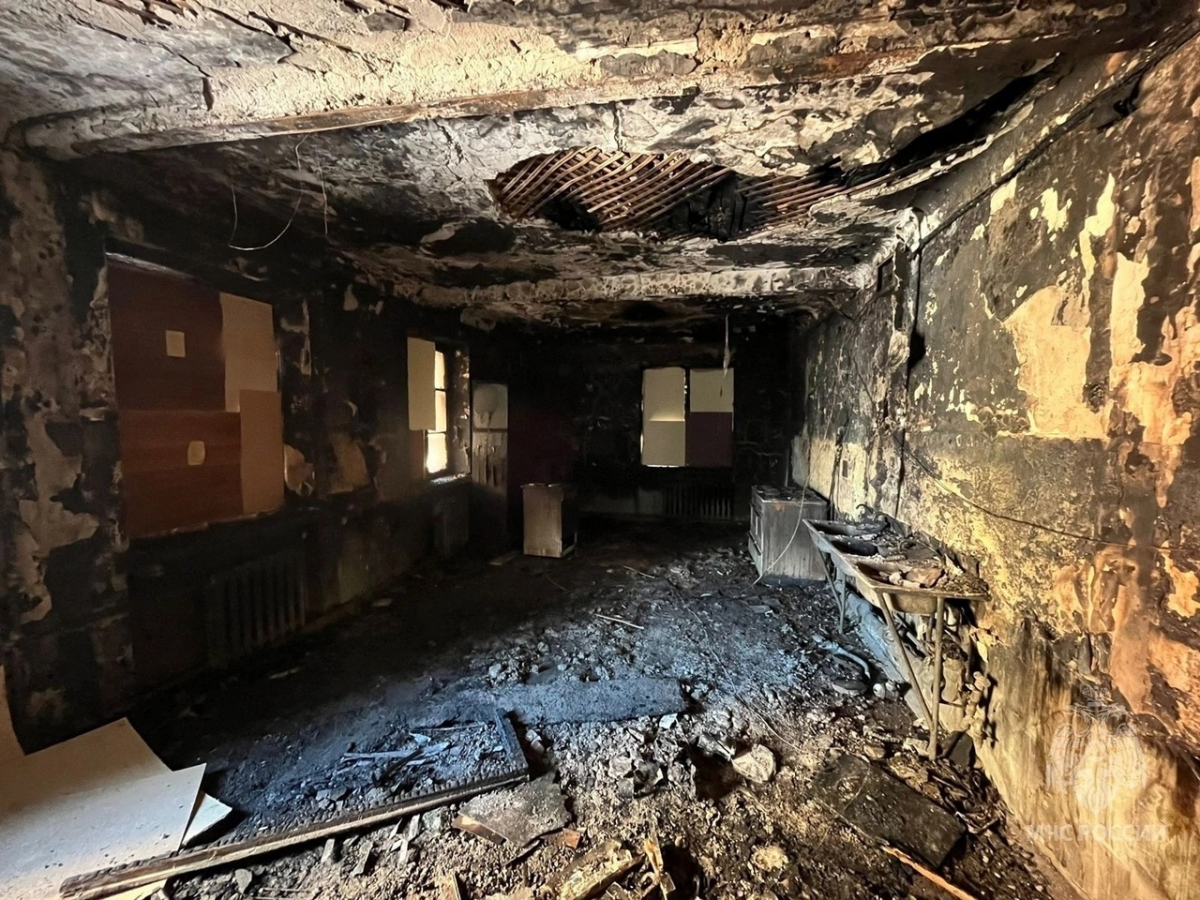 Огонь уничтожил внутреннюю отделку кухни и все, что на ней было. На фото с места происшествия видно, что уцелели только раковины и плита, стены обгорели, а потолок местами обвалился. Жертв, к счастью, удалось избежать.