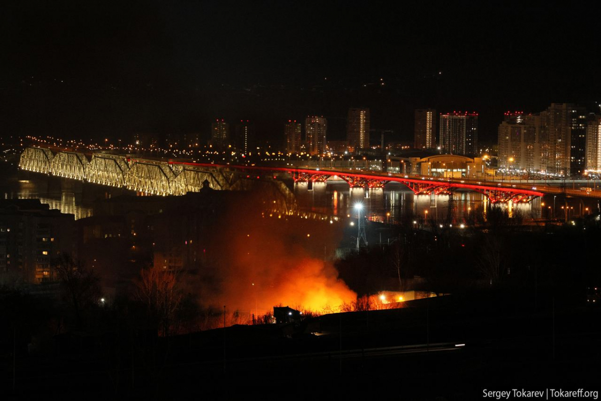 Очередной пожар в частном секторе. Накануне вечером рядом с новой дорожной развязкой в Николаевке сгорела баня и одноэтажный дом, рассчитанный на 6 квартир. Фотографии с места публикует в своём Telegram-канале красноярский фотограф Сергей Токарев.