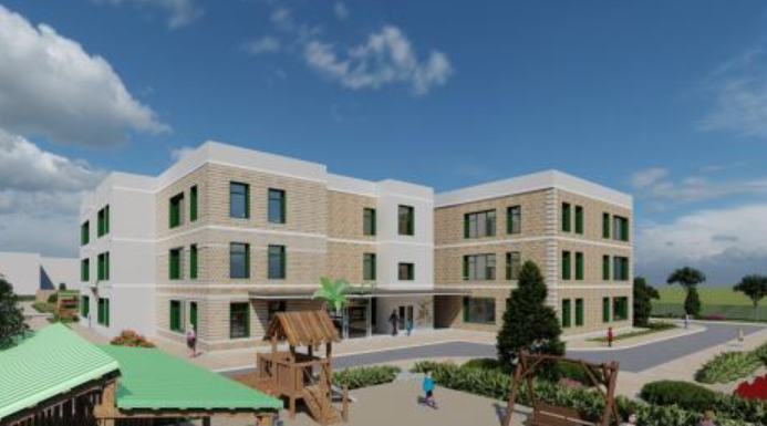 Здание обещает быть стильным, современным и безопасным. Внутри оборудуют залы для музыкальных и спортивных занятий, медицинскую комнату, уютные спальни и прачечную. На открытой площадке разместят песочницы, горки, качели и детский автогородок. А специальные навесы, расположенные по всей территории, защитят малышей от дождя и солнца.